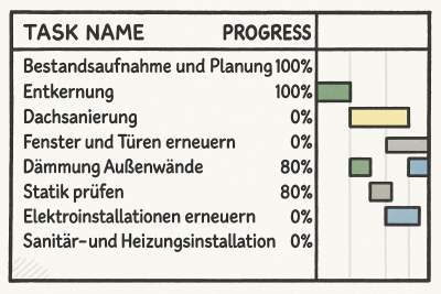My name is Sven. I was planning extensive renovations at home and needed to juggle tasks. Being a project manager by heart, I felt the need of a plan, as in a Gantt chart that can be shared with craftsmen.
